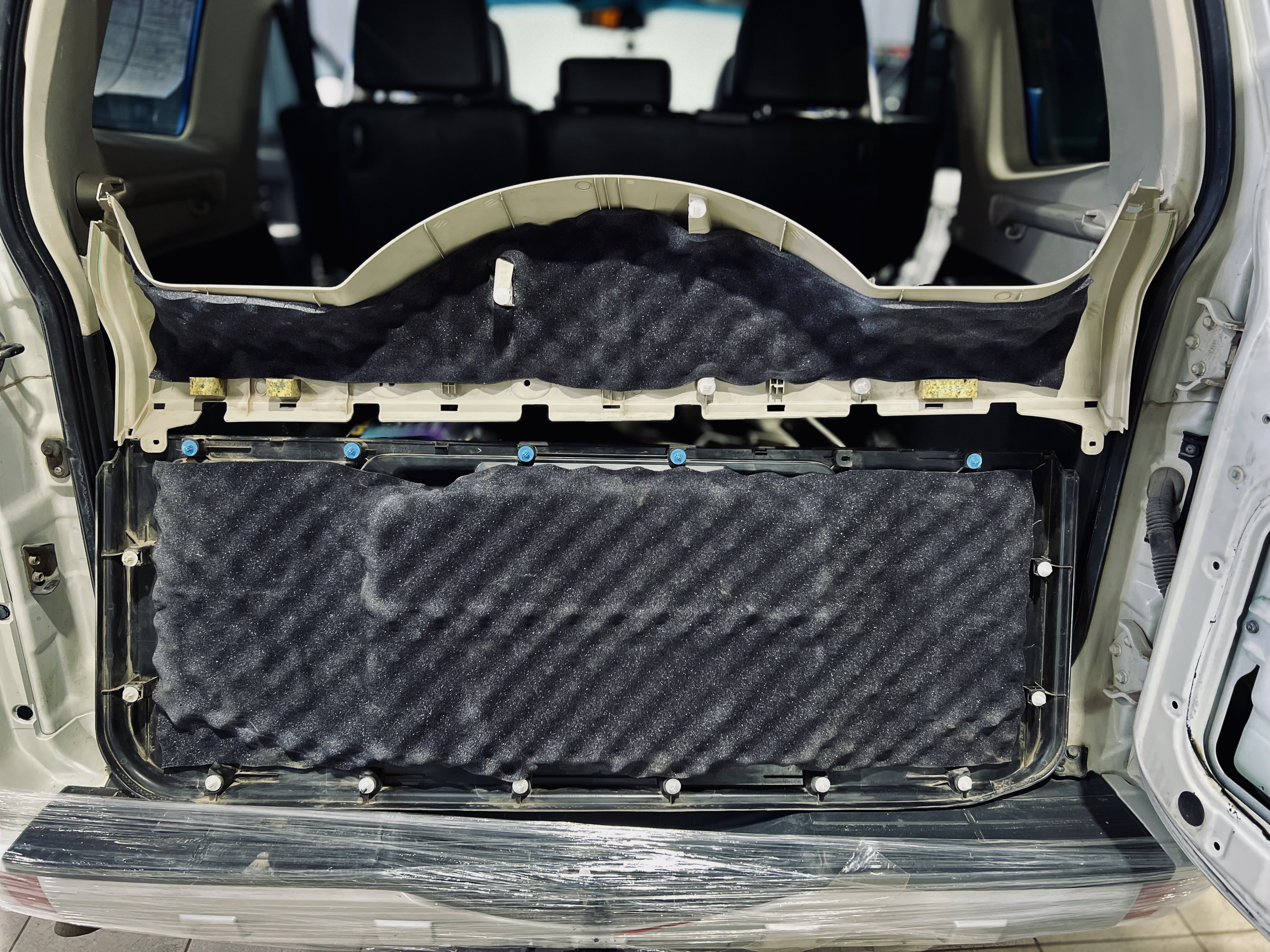 Дверь багажника также тщательно шумоизолированна и покрыта Comfort Mat Тишина Volna.